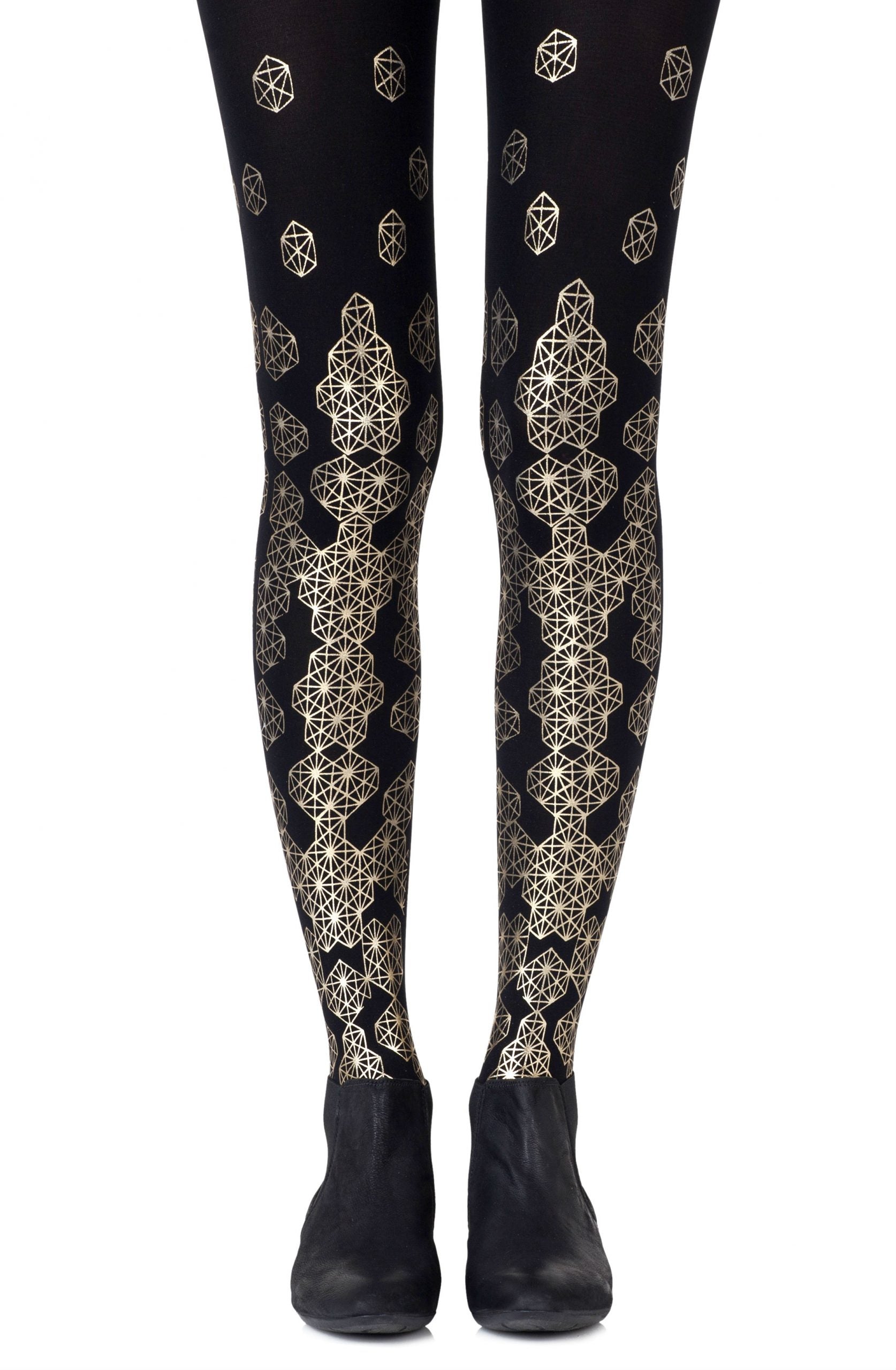 Get the most flattering look with Queen Bee tights that feature a geometric honeycomb inspired shape. Colour: Black tights with Gold print. Thickness: 120 denier. Your entire leg will be getting Zohara love with allover prints. Both sides are not created equal with allover tights so please look at the foot of the tights before wearing to ensure you don't step on the print. (The front print will be lower than the back.) No doubt you will shine with our metallic prints. Please note that these prints require extra care when washing and will naturally fade with wear. Unless they have X-ray vision no one will be able to see through these opaque tights. Hand print no two are the same.