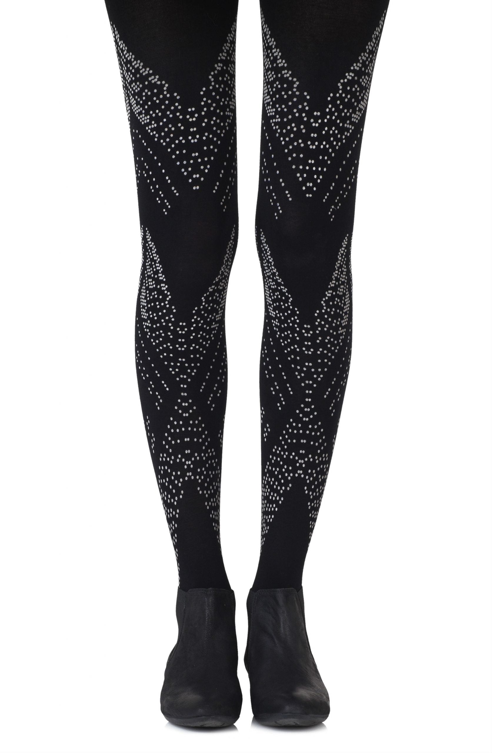 Classic with a twist You're My Darling Angle tights flatter your legs to a T. These tights will be your guardian angel even on the coldest winter day. Colour: Black tights with Light Grey print. Thickness: 100 denier. Your entire leg will be getting Zohara love with allover prints. Both sides are not created equal with allover tights so please look at the foot of the tights before wearing to ensure you don't step on the print. (The front print will be lower than the back.) Made from Cotton. Unless they have X-ray vision no one will be able to see through these opaque tights. Hand print no two are the same.