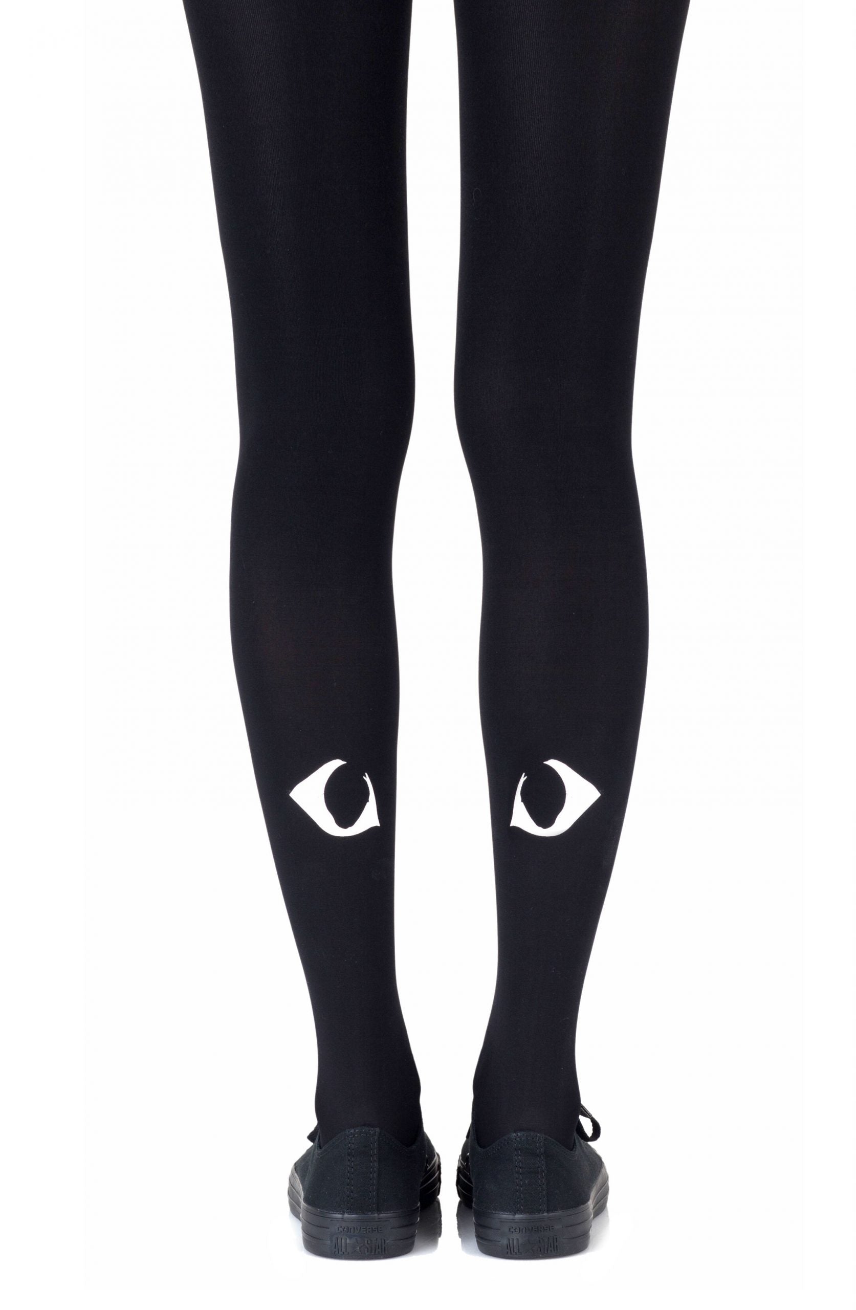 Remind everyone that big brother is watching with the Eyes Wide Open tights that feature a reversible graphic print. Colour: Black tights with White print. Thickness: 120 denier. Unless they have X-ray vision no one will be able to see through these opaque tights. Is the party in the front or the back? You choose with reversible tights where to place all the fun. Hand print no two are the same.