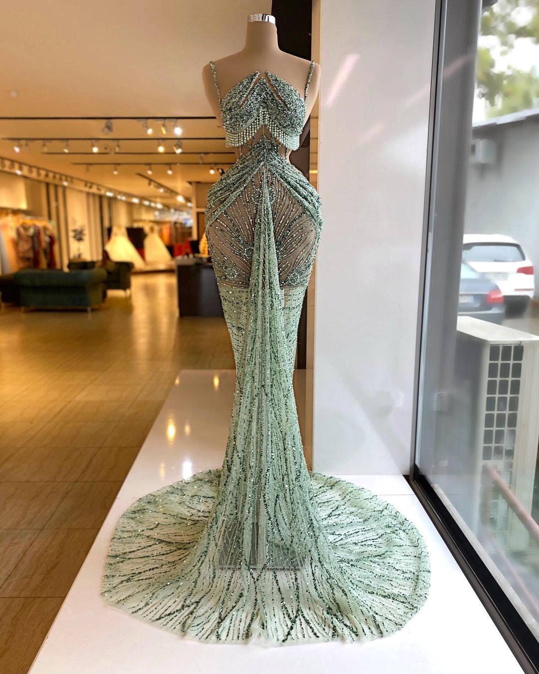 Curio Collection’s "Amari Dress". This stunning green floor length evening dress is intricately hand made from scratch and will most definitely sparkle at any glamorous event x