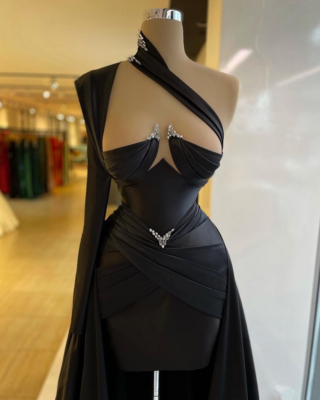 Curio Collection’s "Daleyza Dress". This stunning black one shoulder evening dress is intricately hand made from scratch and will most definitely sparkle at any glamorous event x