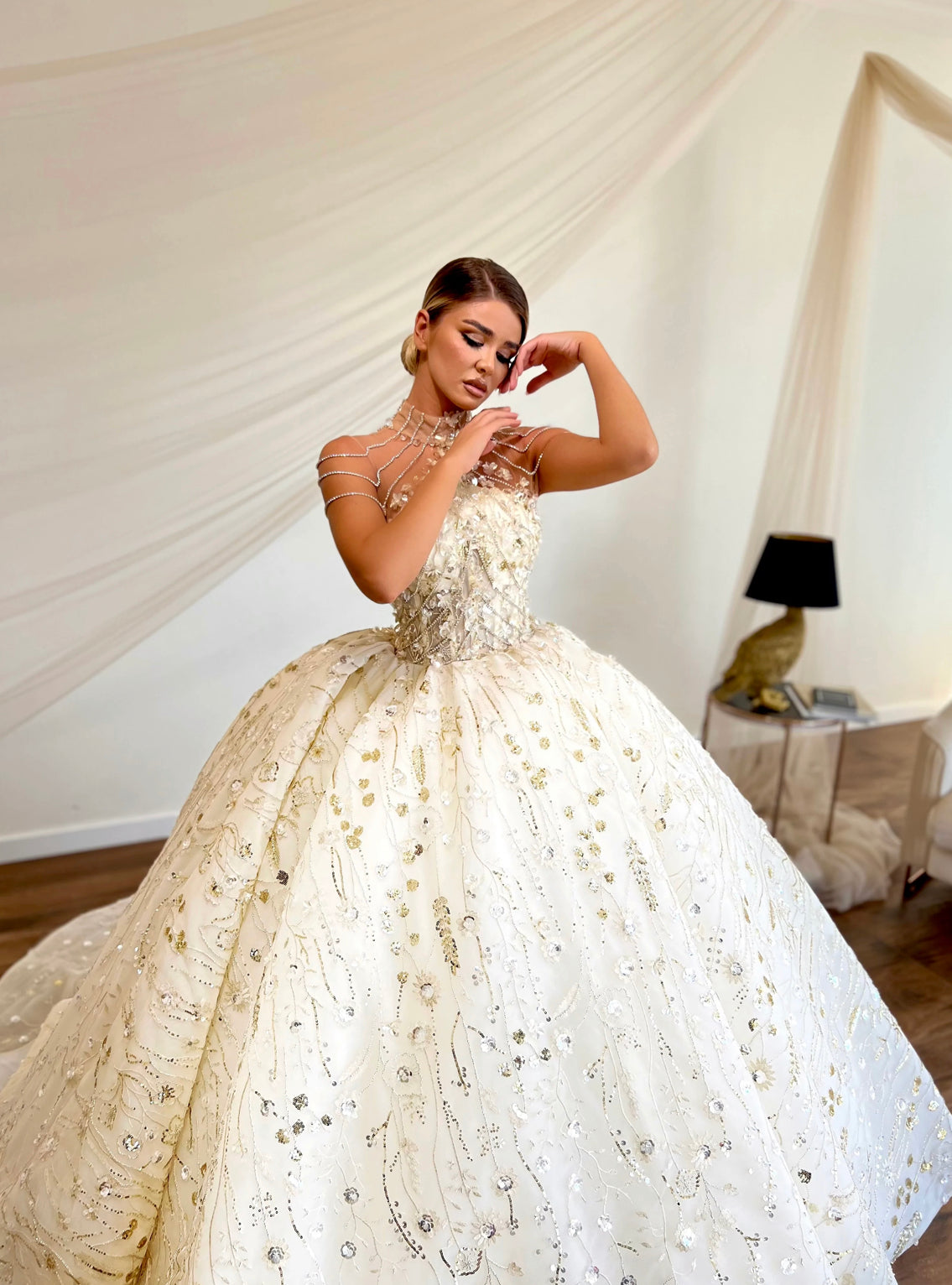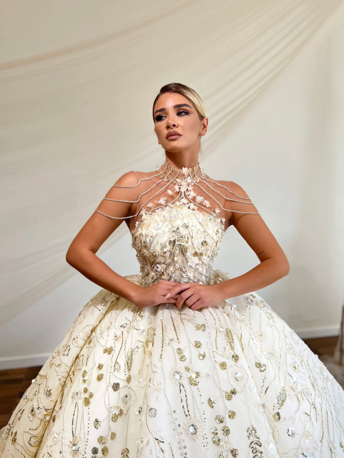 Curio Collection’s "Kaede Dress". This stunning high neck chain detailed wedding gown is intricately hand made from scratch. As with all of our dresses, they can be created bespoke to you and perfectly made to measure x
