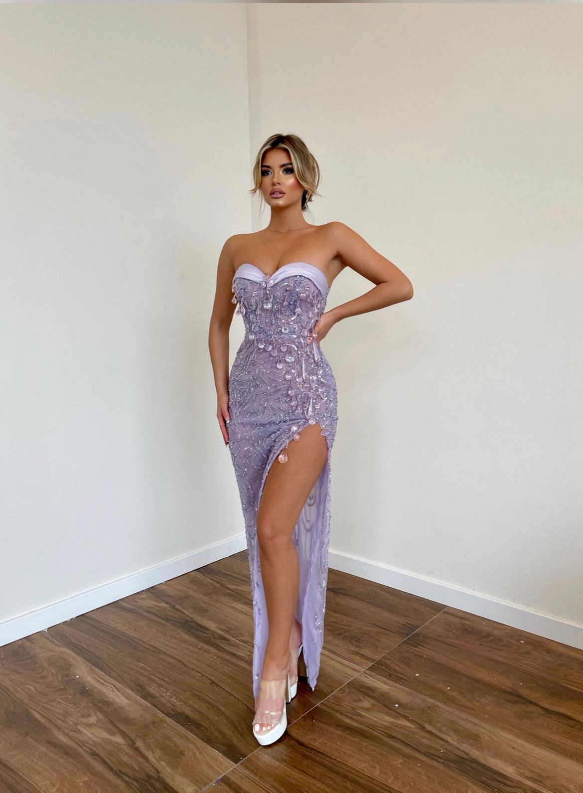 Curio Collection’s "Piera Dress". This stunning lilac beaded evening dress is intricately hand made from scratch and will most definitely make a statement at any glamorous event x